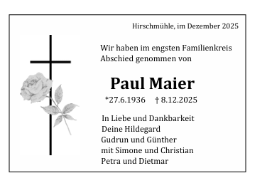 Geboren: 13.12.1931 Verstorben: 10.04.2025