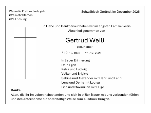 Geboren: 10.12.1936 Verstorben: 01.12.2025